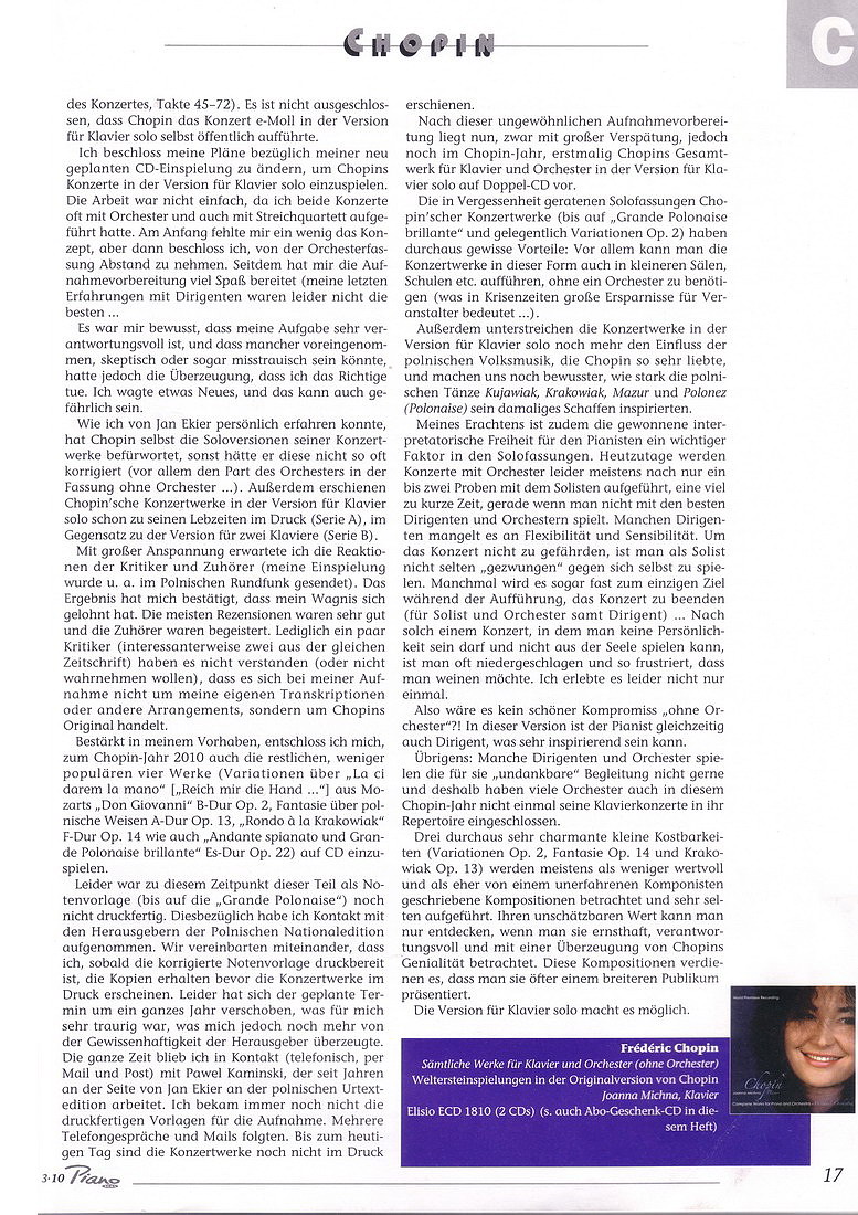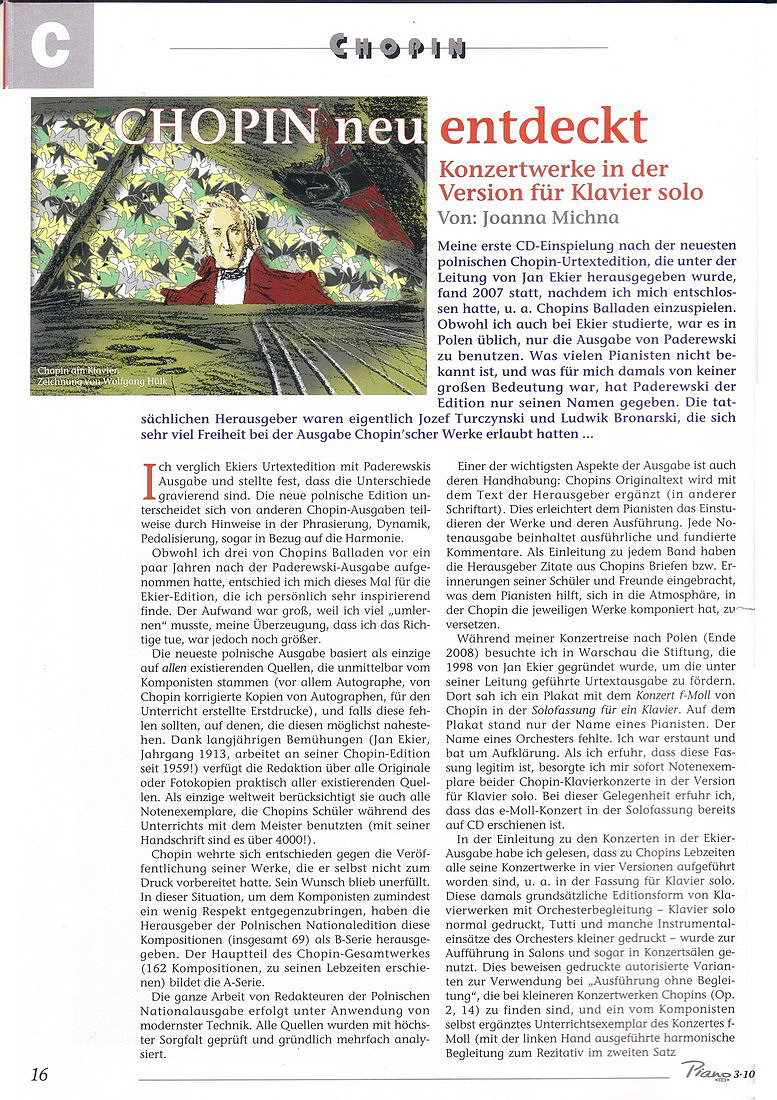 Info-Artikel von Joanna Michna in PIANO News Nr. 3 / 2010 veröffentlicht