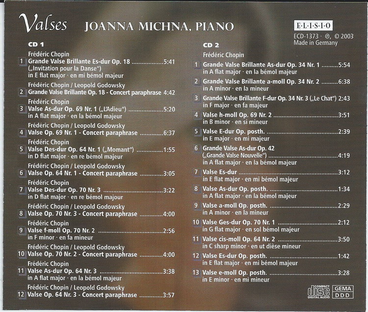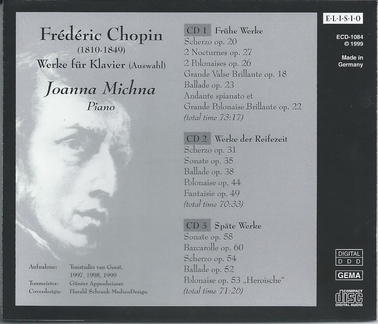 "... Joanna Michna hat sich von ihrer Fantasie leiten lassen, durchaus zum Vorteil für ihre makellosen Interpretationen ... dieses Chopin-Recital hat mit den Paraphrasen von Godowsky ein faszinierendes Profil erhalten, das Joanna Michna mit Esprit konturiert hat."