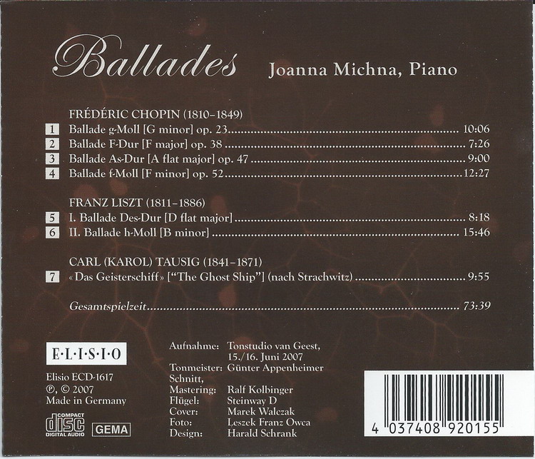 "Wenn man die Balladen Chopins so nuanciert ausleuchtet, wenn man sie atmen lässt und die Kontraste ... so schärft, gewinnen diese Stücke ein ganz neues LebenJoanna Michna hat Kraft für vehemente Attacken, aber auch die Ruhe, die Poesie dieser Musik zu entdecken. Und das ist schon sehr inspirierend."