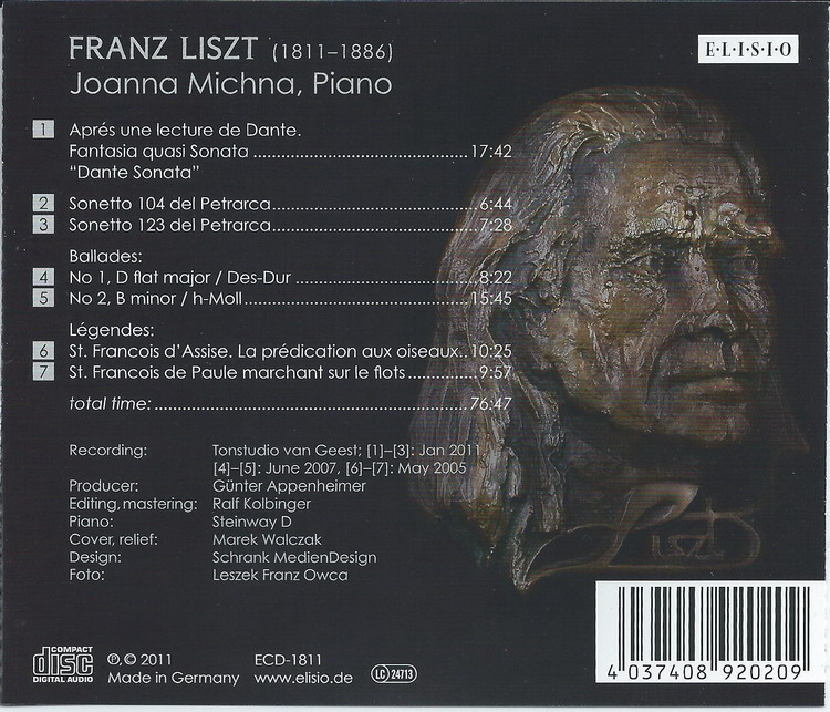 "... All die wunderbaren Momente von Liszt singenden Verständnis vermag die Polin nachzuvollziehen. Und so gestaltet sie die beiden nach Petrarca geschmiedeten Sonette mit Bravour. Und auch die lyrisch-dramatische Erzählkunst in den beiden Balladen gelingt ihr auf bestechende Weise... sind ihr diese lyrischen Werke auf den Leib geschrieben, so scheint es. Perlend, singend und mit Energie für den Klangfarbenreichtum kann sie die weiteren Werke gestalten.”